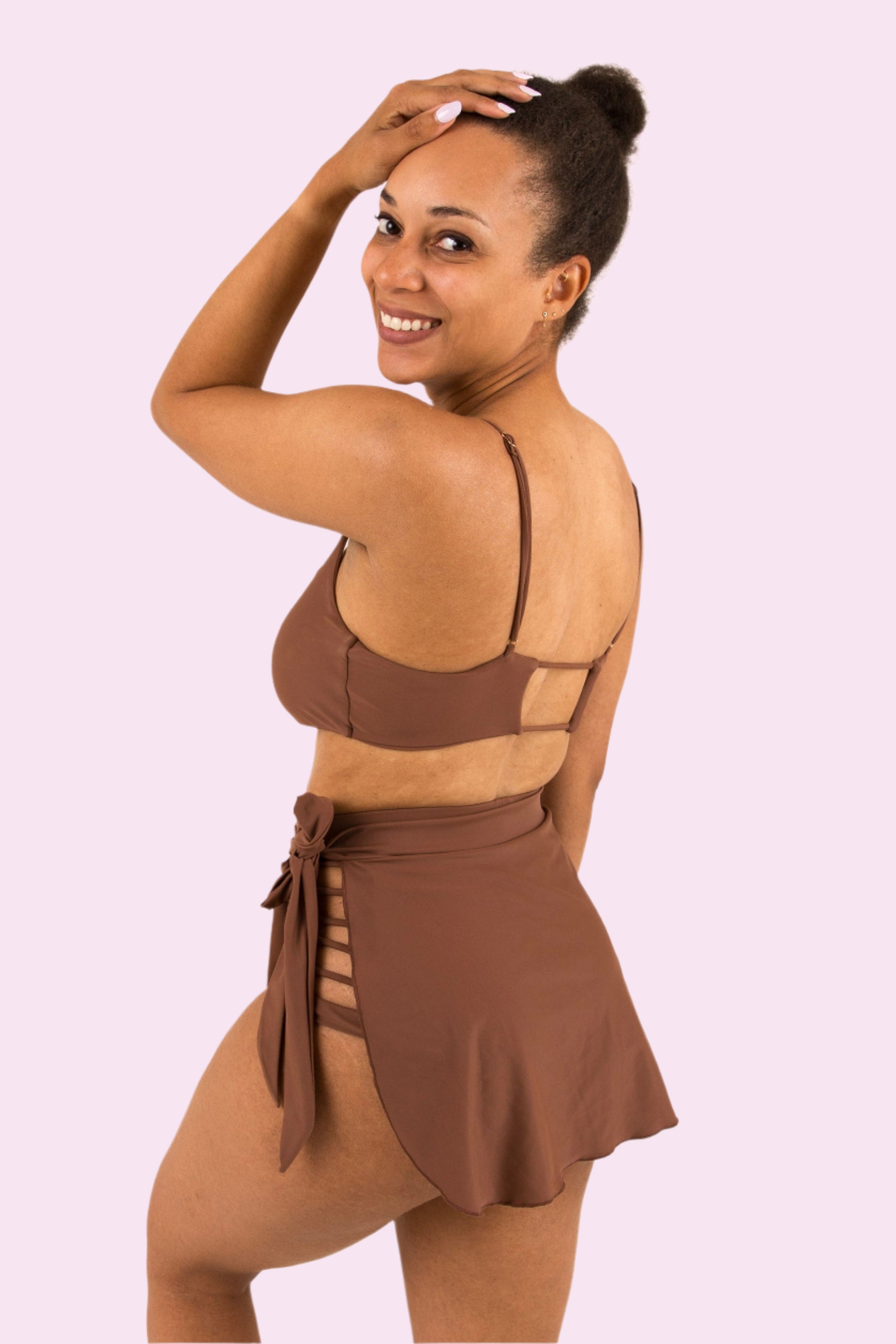 Aurora wrap-around skirt matches perfectly with the Aurora set